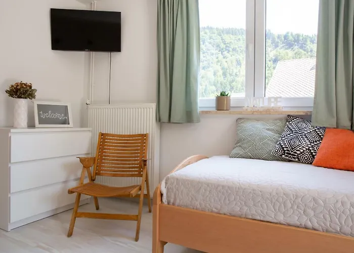 Korosec lägenhet i Bled erbjuder vattenpark, tennisplan och gratis parkering. Det tar cirka 36 minuter med bil från Ljubljana flygplats till boendet.